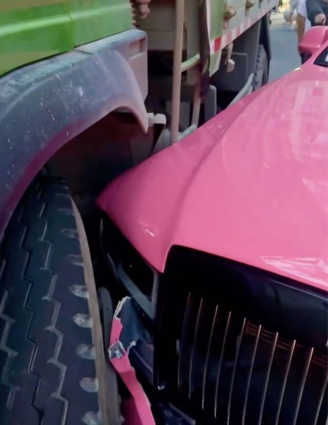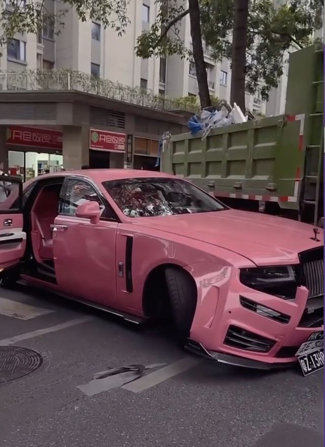 중국 광저우에서 핑크색 롤스로이스와 덤프트럭이 충돌한 사고가 인터넷을 떠들썩하게 만들었다.