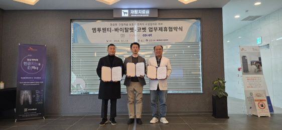 반려동물 헬스뷰티 유통기업 ‘바이탈펫’, 동물병원 솔루션 전문기업인 ‘코벳’, 인천SKY동물메디컬센터 등이 명단에 포함됐다. 엠투웬티가 기술개발과 제조를 담당하고, 바이탈펫이 국내외 유통 및 마케팅 총판 역할을 맡는다. 코벳은 동물병원에 공급을 진행한다. 시너지를 극대화하기 위해 이들 3사는 이날 인천SKY동물메디컬센터에서 전략적 사업제휴 협약을 체결했다,