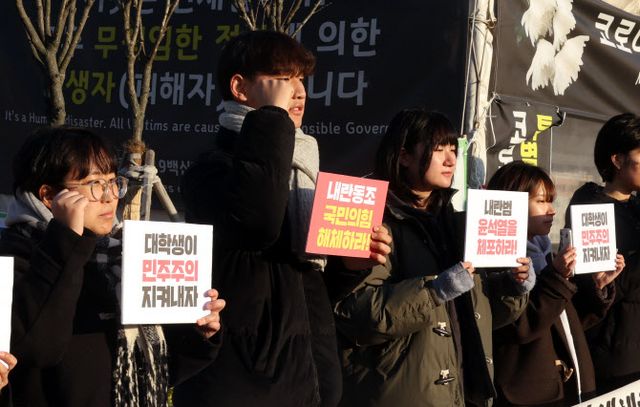 전국 산발적으로 시국선언이 이어지고 있는 대학가에서는 일원화된 조직을 만들어 한목소리를 내겠다는 움직임이 나왔다. 대학 시국선언 제안자들을 중심으로 만들어진 ‘윤석열 퇴진 전국 대학생 시국회의(시국회의)’는 이날 서울 여의도 국회 앞에서 기자회견을 열고 윤 퇴진을 위해 대학생이 앞장서겠다고 선언했다. 시국회의는 전국 31개 대학에서 2000여명의 학생이 모였다.