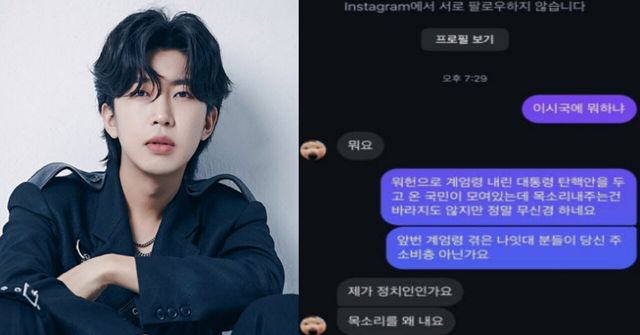 논란의 발단은 지난 7일 온라인 커뮤니티에 공개된 인스타그램 DM 메시지였다. 해당 게시물에 따르면 한 팬이 임영웅에게 “이 시국에 뭐하냐”는 메시지를 보내자, 임영웅은 “뭐요”라고 답했다. 이후 팬이 “위헌으로 계엄령을 내린 대통령 탄핵안에 온 국민이 모여있다. 당신의 주 소비층인 연령대가 특히 계엄의 영향을 받았던 분들 아니냐”고 묻자, 임영웅은 “제가 정치인인가요. 목소리를 왜 내요”라고 반문했다.