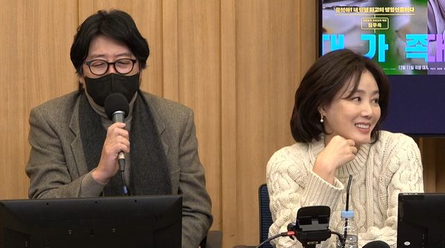 김윤석은 '대가족' 홍보 중 "키스신이 있다"고 스포를 했고, DJ는 "김성령과 김윤석의 키스신이냐", "김성령 씨 키스신 오랜만 아니냐"며 폭발적인 반응을 보였다.
