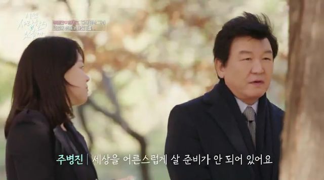 이야기를 듣던 최지인은 "마음이 여리신 것 같다"라며 "겉으로 보면 강해보이시고 회장님 포스도 있고 카리스마도 있으신데"라고 하자 주병진은 "너무 여려서 탈"이라고 답했다.