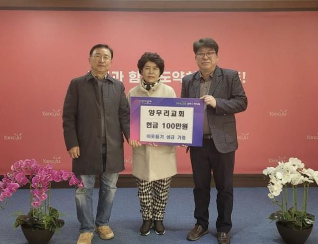 [와이뉴스] 양주시 백석읍이 10일 양무리교회(목사 심금자)에서 크리스마스를 맞아 지역의 취약 가구들을 돕기 위해 100만원을 기부했다고 밝혔다.