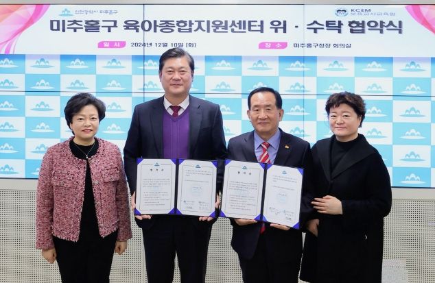 [파이낸셜경제=김예빈 기자] 인천 미추홀구는 10일 구청장실에서 인천KCEM보육교사교육원과 미추홀구 육아종합지원센터 운영 위수탁 협약을 체결했다.