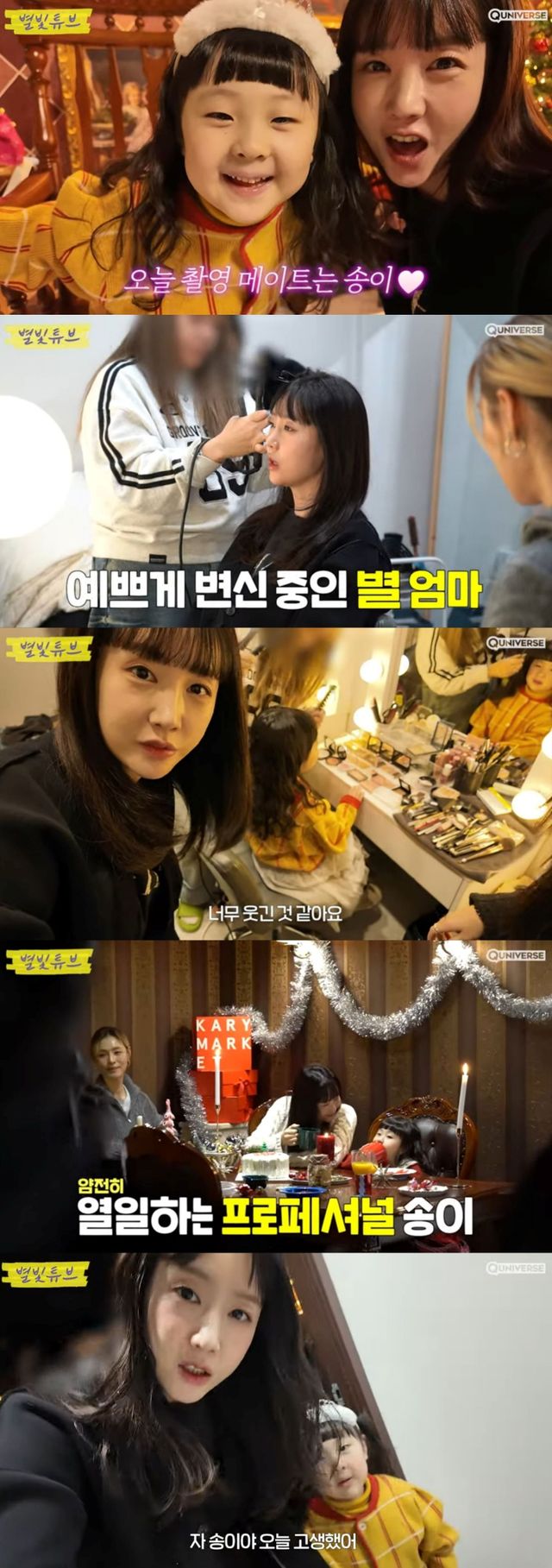 무사히 촬영을 마친 후 별은 딸에게 "오늘 고생했고, 우리 송이 정말 잘했어. 다 너가 최고래"라는 폭풍칭찬으로 기분 좋게 귀가했다.