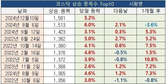 상승 종목수 역대 최고치 기록...