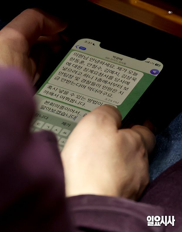 메시지를 받은 김 최고위원은 “본회의 중이어서... 끝나고 알아보겠습니다”라고 짧게 답장했다.