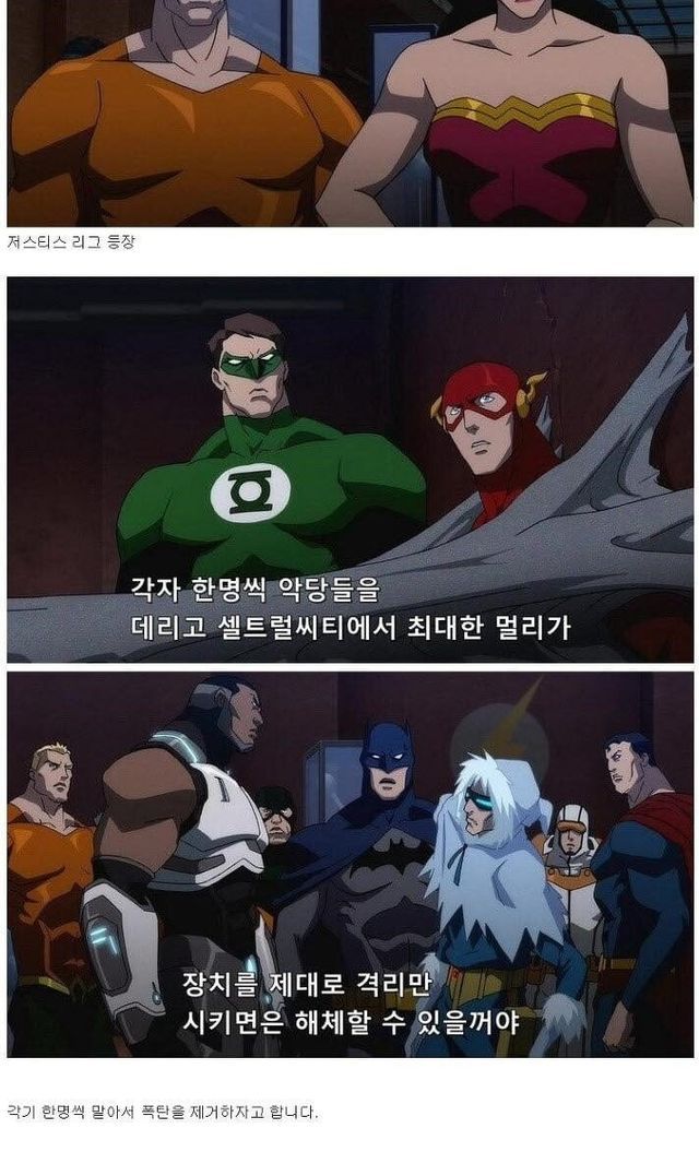 폭탄을 처리하는 저스티스 리그