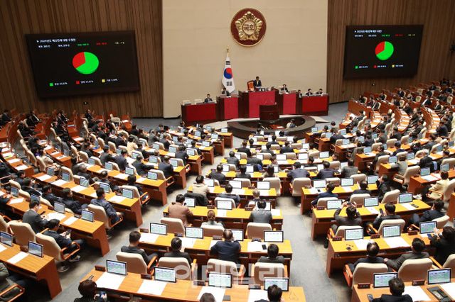 국회는 10일 본회의에서 이 같은 산업부의 2025년 예산 및 기금운용계획을 확정했다. 올해 예산 11조4789억원과 비교하면 453억원 줄고, 산업부가 앞선 9월 국회에 제출한 11조5010억원 대비 675억원 줄었다. 국회는 이날 본회의에서 정부안에서 4조1000억원을 줄인 673조3000억원 규모의 야당 단독 수정 내년도 예산안을 의결했다. 윤석열 대통령의 비상계엄 발령과 그 이후 이어진 탄핵 정국 속에 헌정 사상 유례없는 야당 단독 수정 예산안이 확정된 것이다.