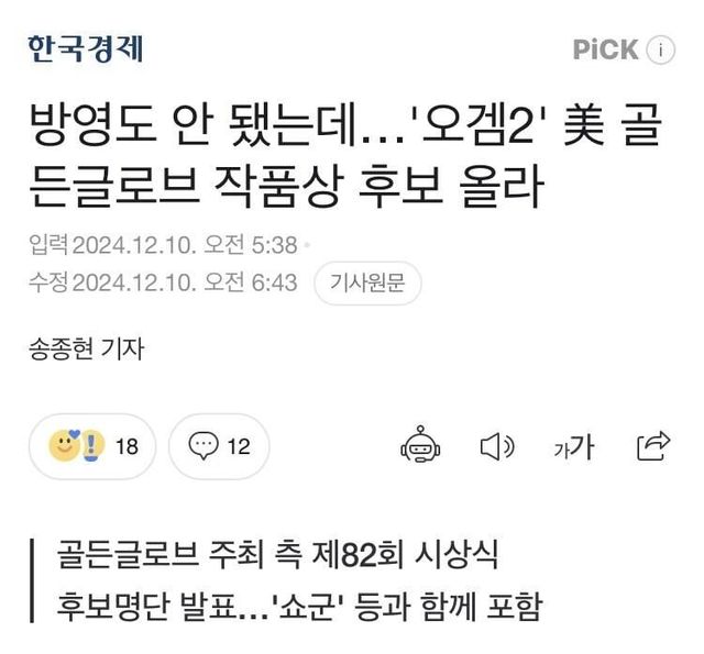 "대부분의 사람들은 오징어게임 2를 못 봤겠지만 이미 본 입장에서 난 개인적으로 쇼군(디+ 드라마)을 넘는 올해 최고의 TV 시리즈라고 생각합니다. 오늘 아침에 이미 트윗을 올렸는데 골든글로브 작품상은 오징어 게임2가 가져가는 게 맞다고 저는 생각합니다."