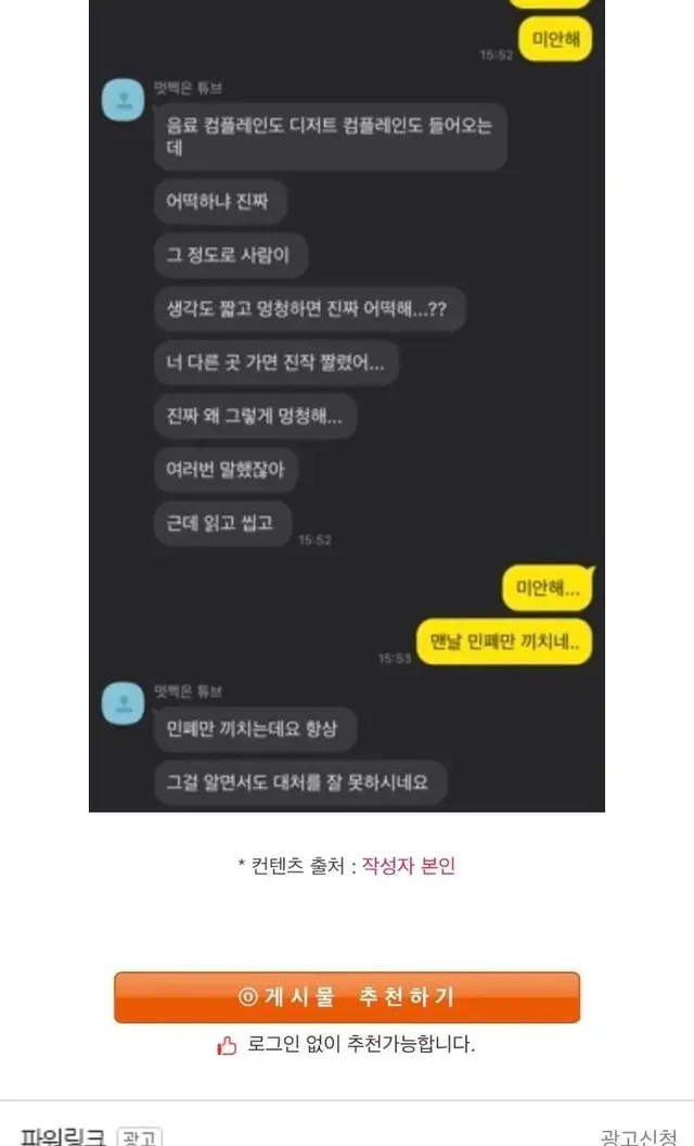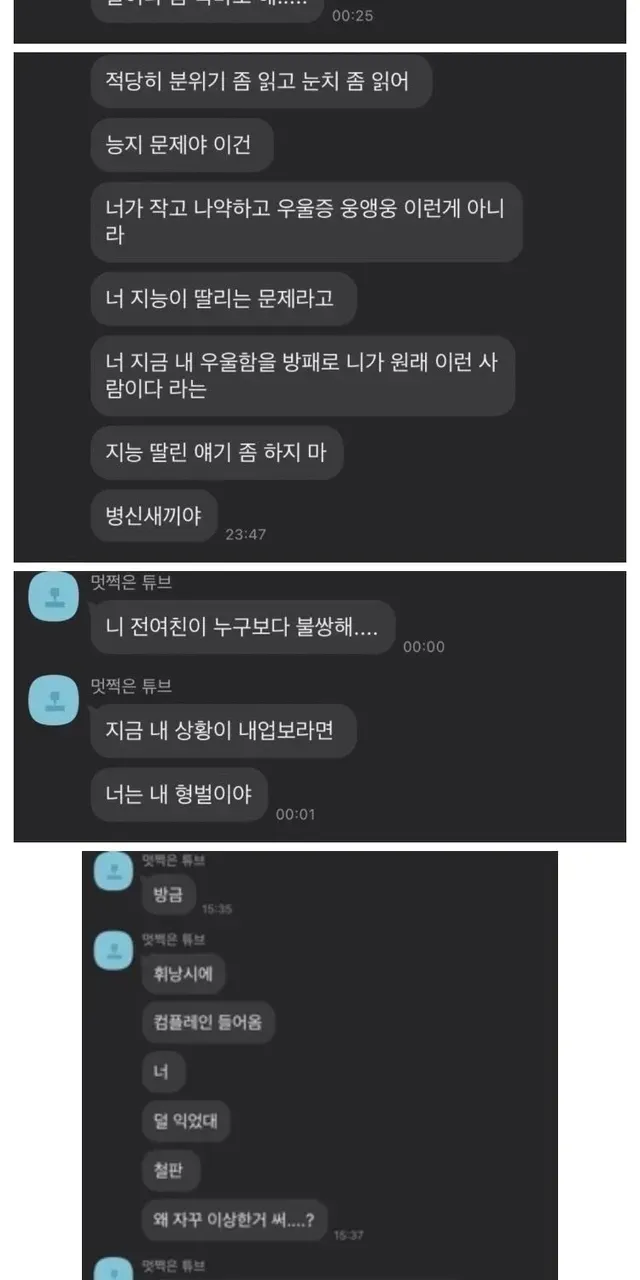 2. 해당 유저가 알바하면서 실수 같은게 많았던 모양인지 압박 받고 인신 모욕 당함.