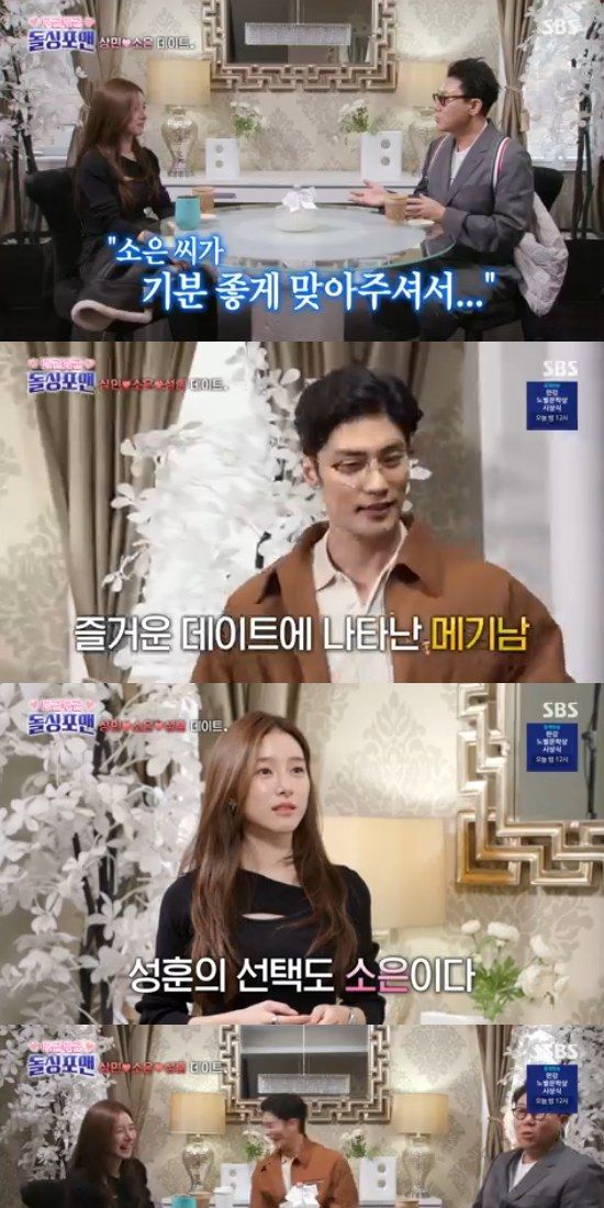 10일 방송된 SBS 예능 프로그램 '신발 벗고 돌싱포맨'은 '두근두근 돌싱 시그널 in 캐나다' 특집으로 꾸며져 장희진, 김소은, 솔비 그리고 '메기남' 성훈이 출연한 가운데 소개팅 최종 결말이 공개됐다.