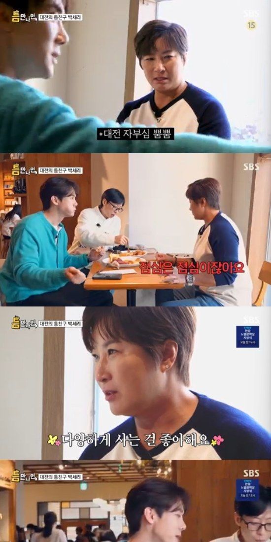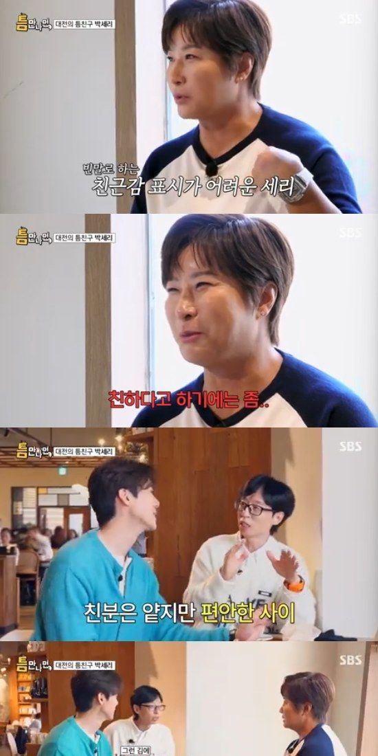 10일 방송된 SBS 예능 프로그램 '틈만나면'에서는 박세리가 '틈 친구'로 출연해 유재석, 유연석과 함께 '틈 주인'을 만나 이야기를 나눴다.