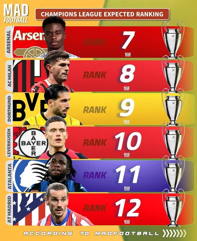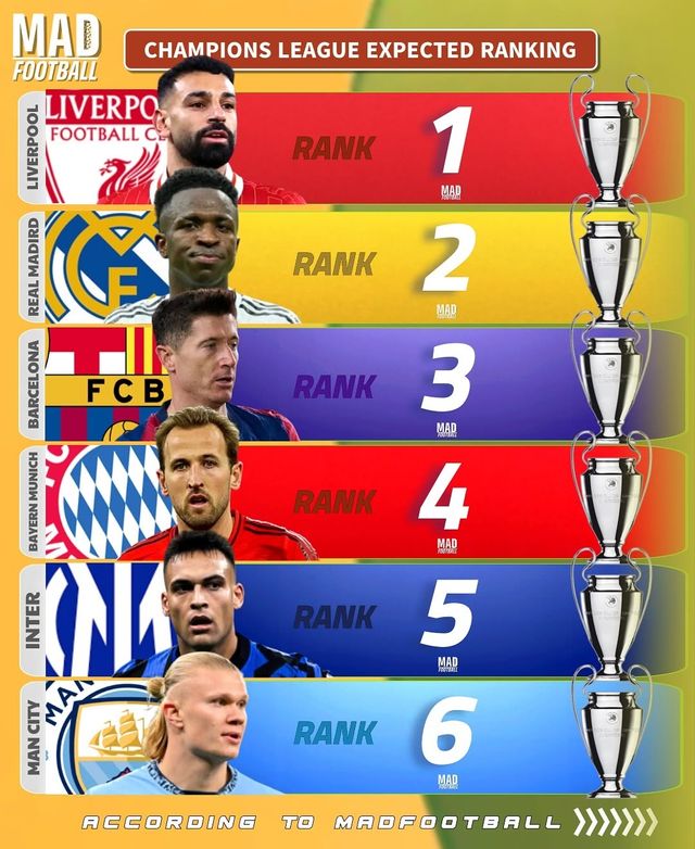 '매드 풋볼'은 10일(한국시간) 공식 SNS 계정을 통해 이번 시즌 챔피언스리그에 참가한 팀들의 순위를 예상했다.