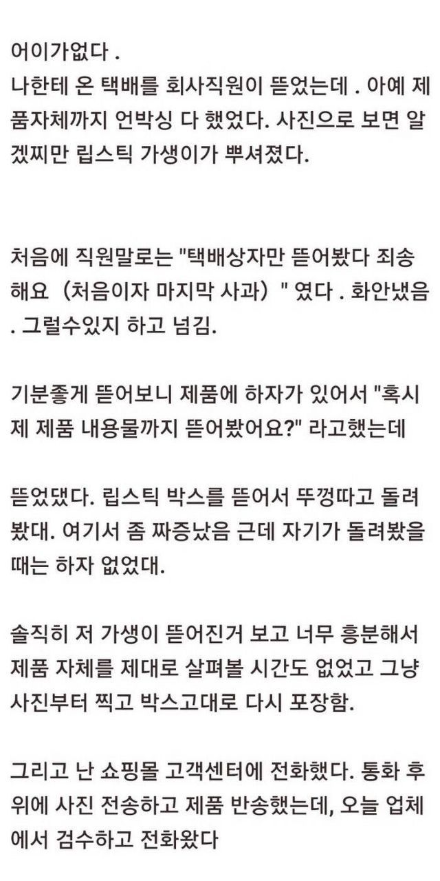 남의 택배 뜯어서 사용한 직원.