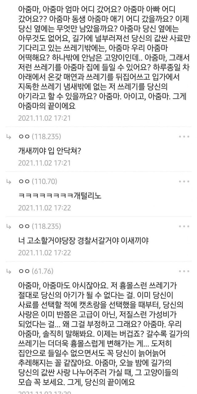 냥갤 왔다가 개털린 캣맘충
