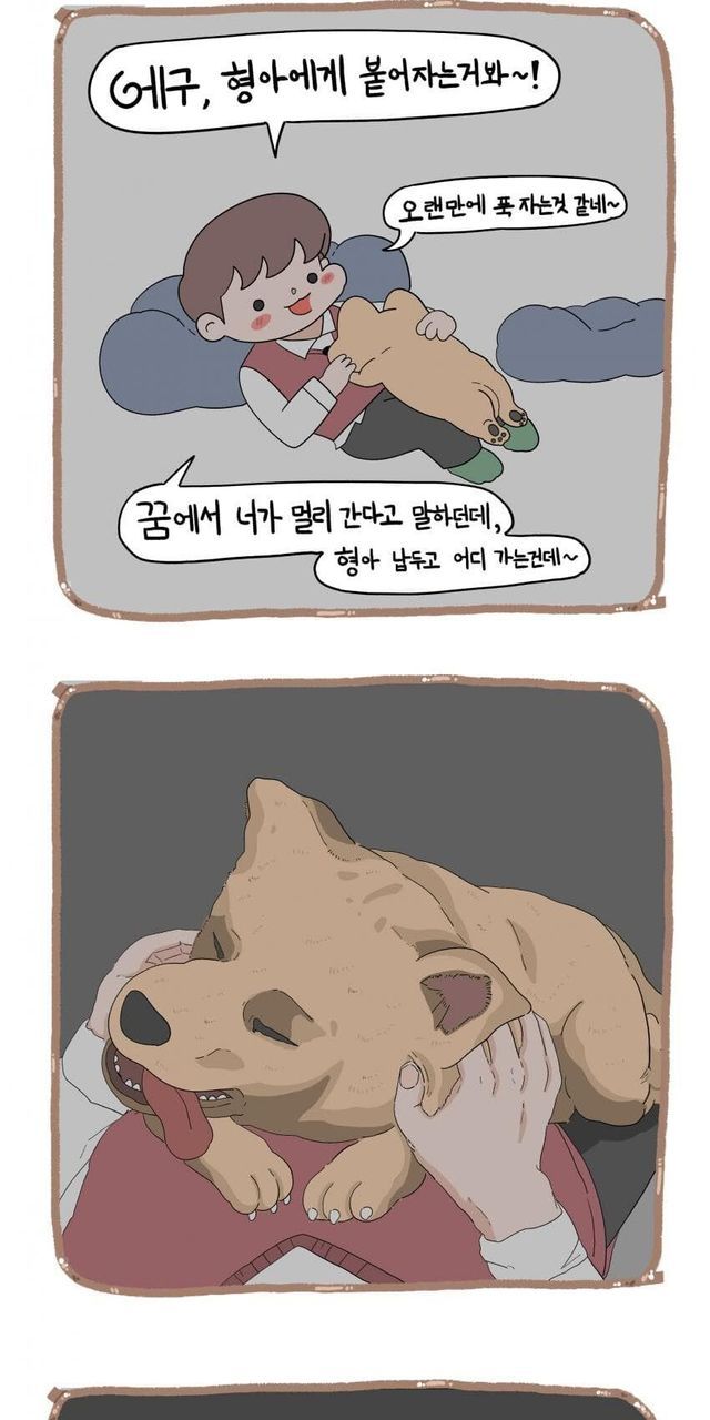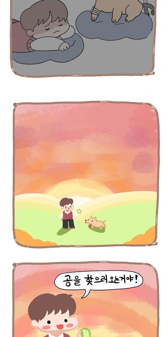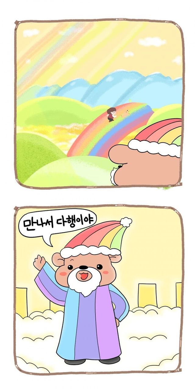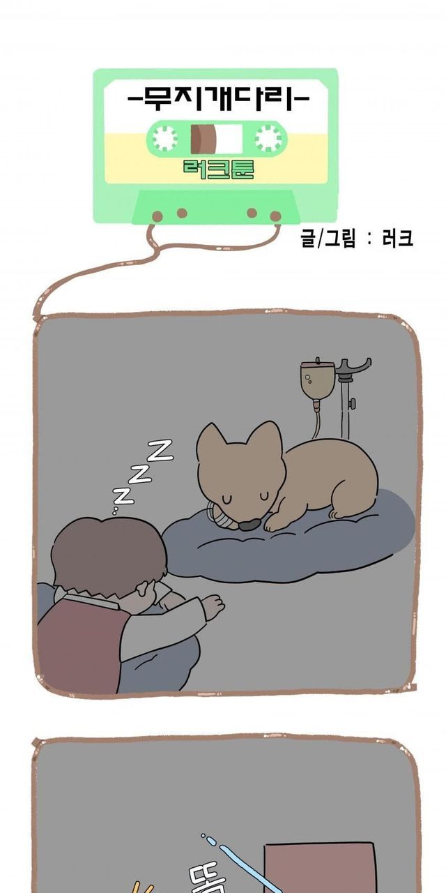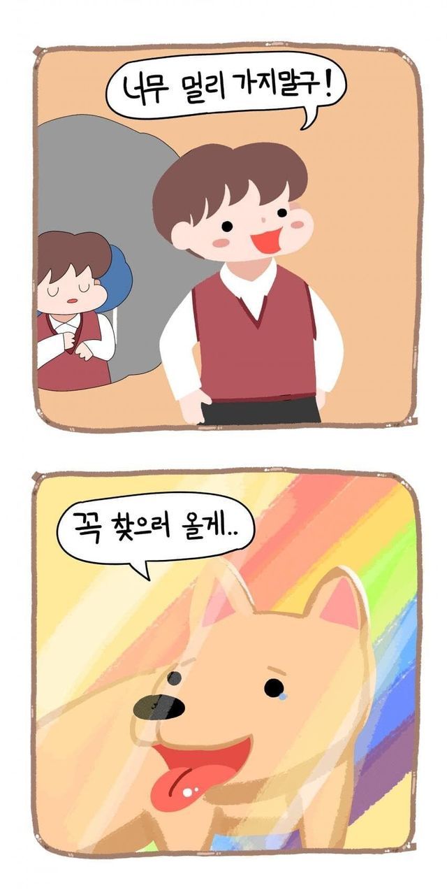 강아지 무지개 다리 건너는 만화.