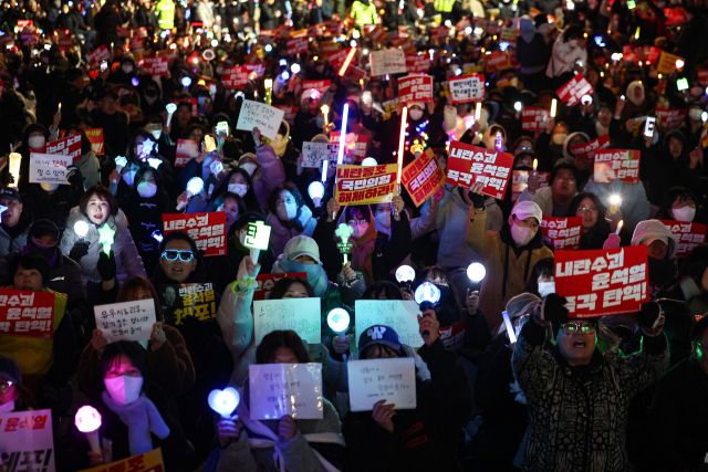12.3 비상계엄 사태 일주일째인 10일 서울 여의도 국회 앞에서 열린 '내란죄 윤석열 퇴진! 국민주권 실현! 사회대개혁! 범국민촛불대행진'에서 시민들은 나이와 성별에 관계없이 서로가 서로를 격려하며 연대했다. 이날 집회는 주최 측 추산 시민 4만여 명이 함께했다.