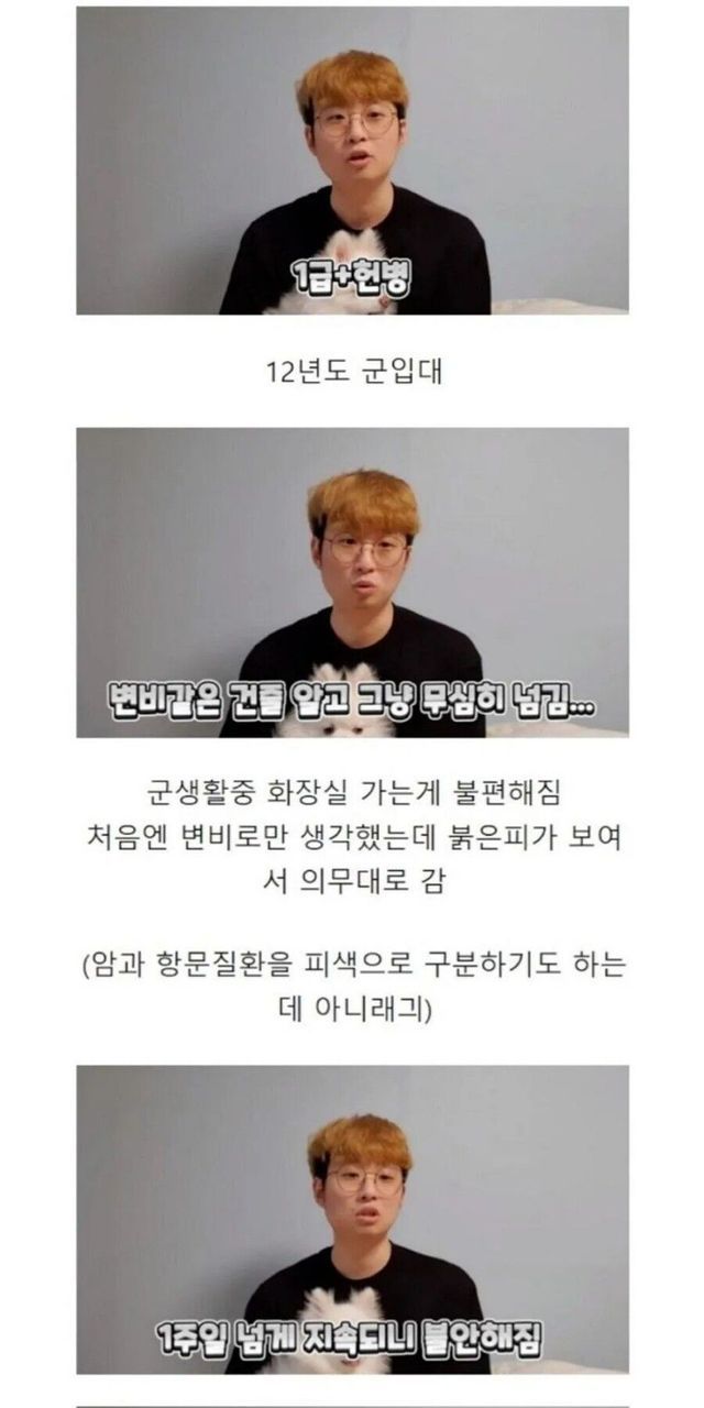 전역 3개월 뒤 대장암 4기 판정 받은 남자.