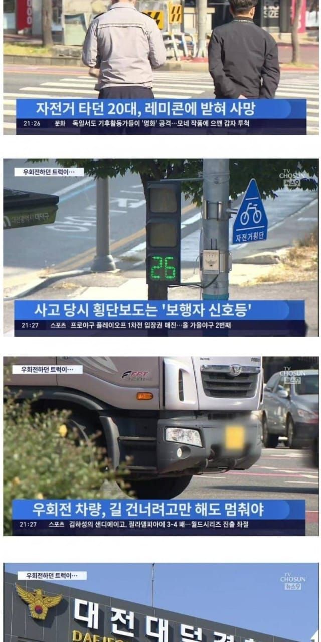 우회전 하던 트럭에 받힌 20대 여성