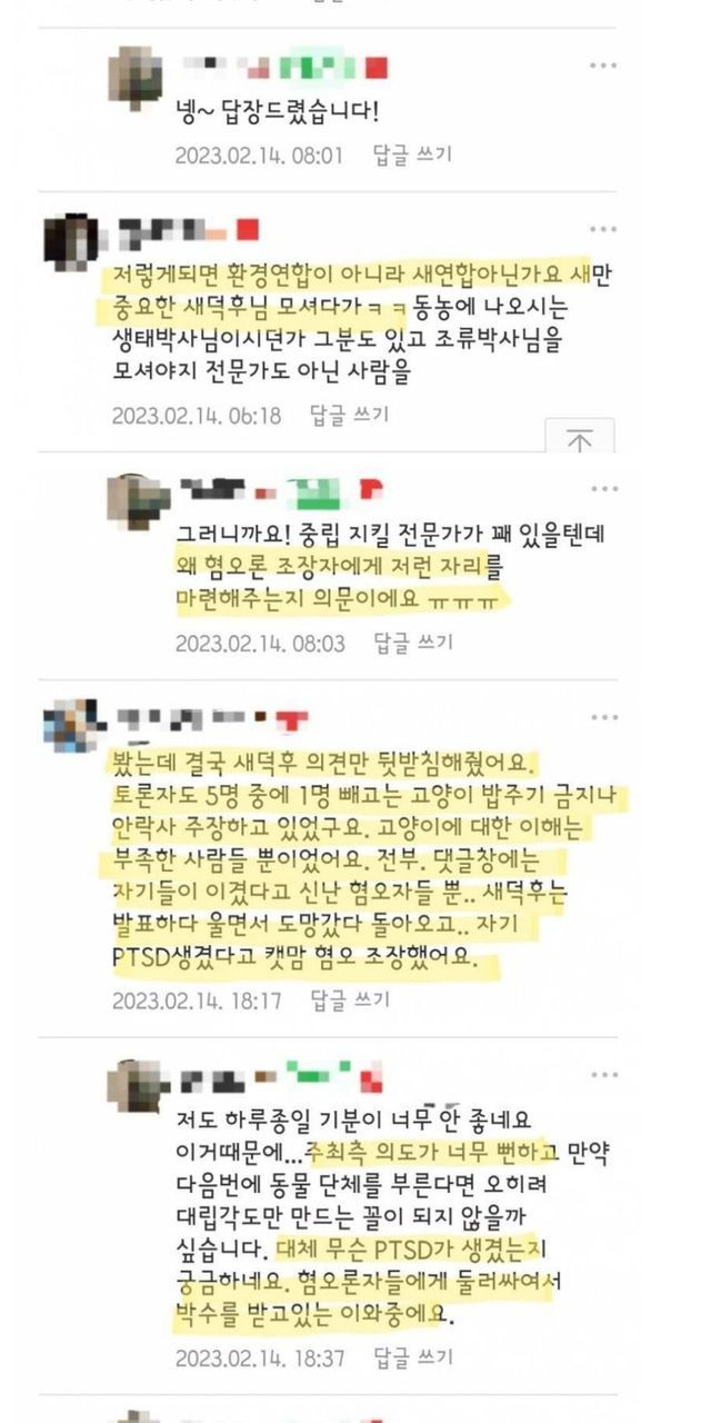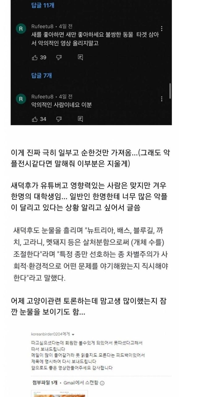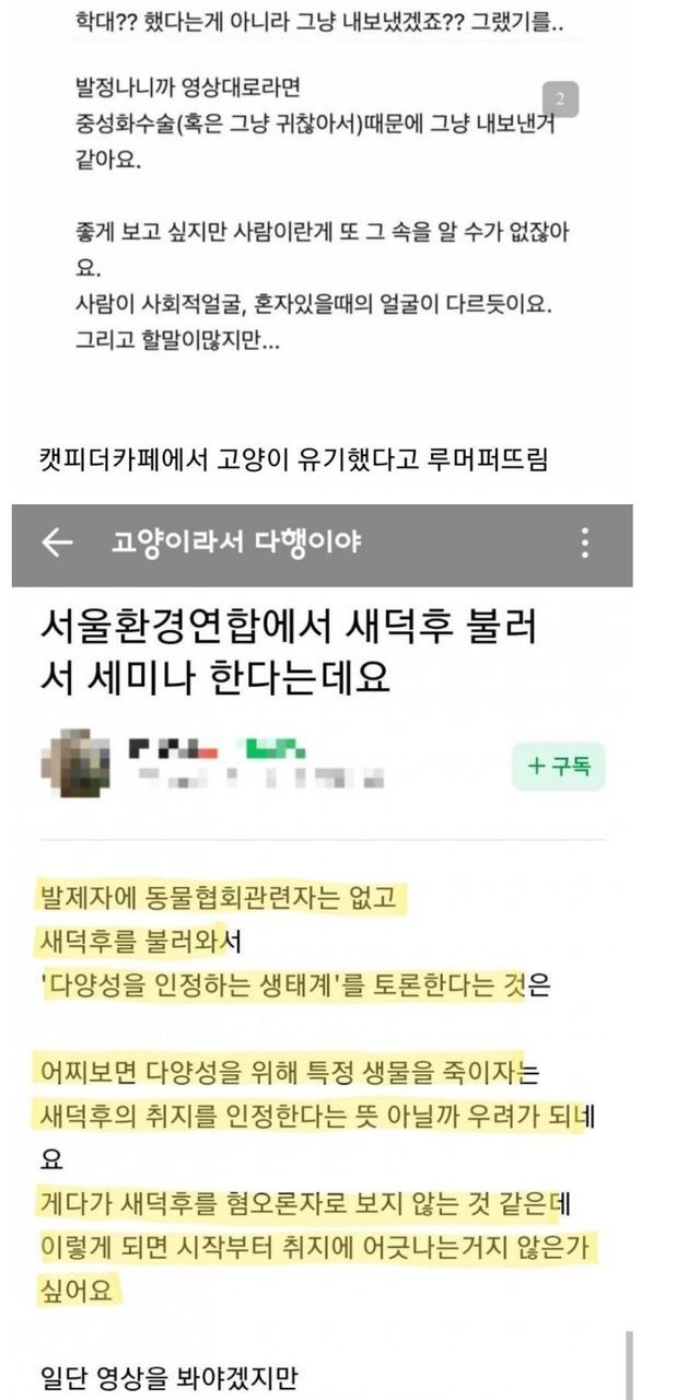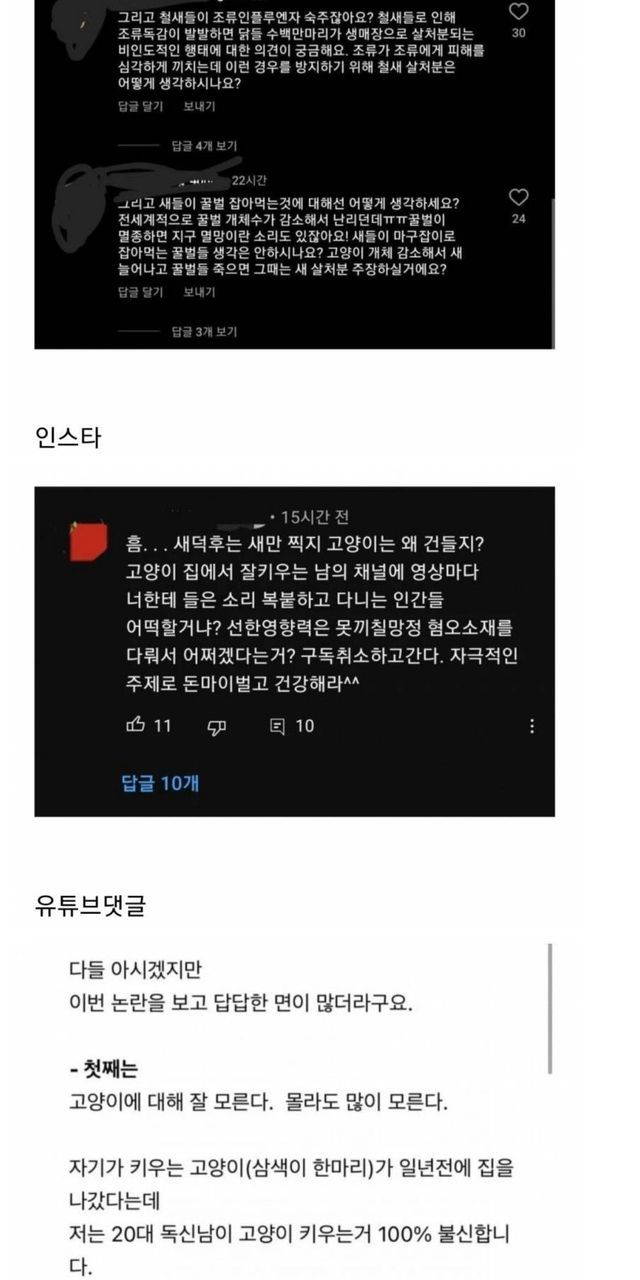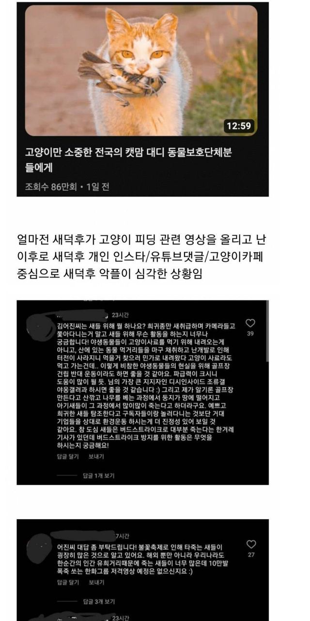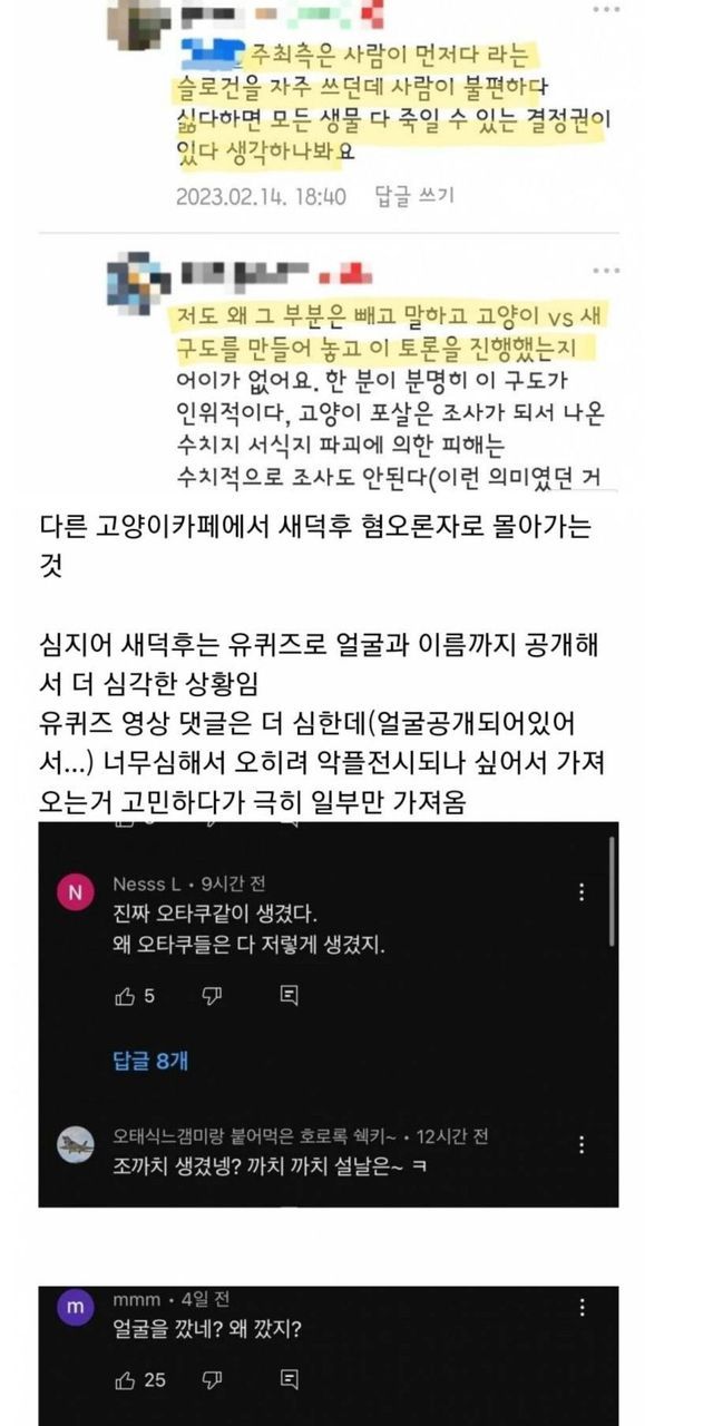 새덕후에게 악플다는 캣맘들.