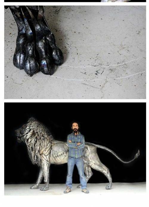 고철조각 4천개로 만든 사자,,