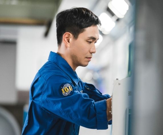 공개된 사진 속에서 볼 수 있듯 우주정거장을 제집처럼 누비고 있는 우주 과학자 강강수 캐릭터에 대해 배우 오정세는 “‘내가 할 수 있을까?’라고 생각했다가 ‘일단 만나 보자’고 마음먹은 인물”이라고 표현했다.