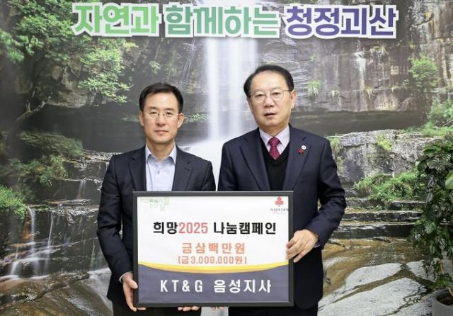 백종호 KT·G 음성지사장은 “작은정성이 지역사회에 도움이 되길 바라며, 지속적인 나눔을 통해 더 나은 세상을 만드는 데 기여할 수 있기를 기대한다.”며 기부의 뜻을 밝혔다.