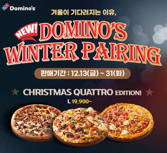 관계자는 “이번 크리스마스와 연말은 소중한 사람들과 함께 해당 브랜드의 콰트로 피자를 즐기며 행복하고 맛있는 시간 보내시길 바란다”고 말했다.