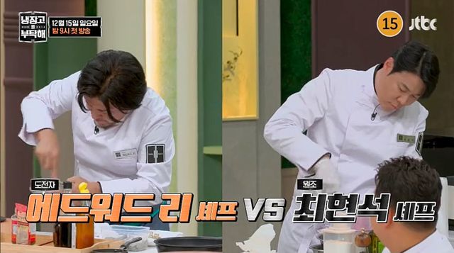 그런가 하면 모두가 기다린 세기의 대결, 최현석과 에드워드 리의 만남은 몰입을 배가시킨다. 더불어 요리 중인 최현석의 냄비에서 심상치 않은 연기가 피어오르고 주변에서 “탔어”라는 소리가 들려 예측 불가능한 대결이 예고되고 있다.