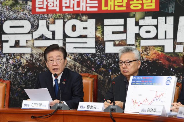 그는 국가 경제 회복을 위해선 윤 대통령에 대한 탄핵이 전제돼야 한다며 탄핵 필요성을 거듭 언급했다. 이 대표는 “오는 14일 2차 탄핵 의결을 통한 정치 불확실성 해소가 경제 회복의 가장 중요한 전제”라며 “이를 계기로 정책 기조를 민생과 성장 중심으로 전환한다면 우리 경제는 놀라운 회복력을 발휘할 것”이라고 강조했다.
