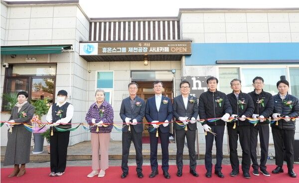 휴온스는 지난 10일 휴온스 제천 1공장에서 장애인 바리스타와 함께하는 사내 카페 '카페 휴'의 오픈 기념식을 개최했다고 11일 밝혔다. 지난 7월 충북 제천시 사회복지법인 다하와 업무협약을 맺은 것의 연장선이다. '카페 휴'에서 근무하는 장애인 바리스타들은 전문 교육을 수료하고, 카페 운영과 음료 제작 등 여러 업무를 담당할 예정이다. 향후 휴온스는 카페운영을 위한 공간 임대료와 운영관리비를 지원하며, 사회복지법인 다하는 카페 운영과 관리를 맡는다. 사내카페 운영을 통해 발생하는 모든 수익은 장애인 바리스타의 급여 및 수당으로 지급돼 경제적 자립 등을 지원하게 된다.