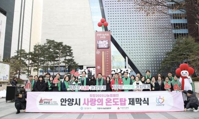 사랑의 온도탑은 연말연시 나눔 문화 확산을 위해 추진하는 사회복지공동모금회의 사회공헌 프로그램이다. 안양시는 ‘기부로 나를 가치있게, 기부로 안양을 가치있게!’라는 슬로건으로 오는 2025년 1월 31일까지 참여한다.