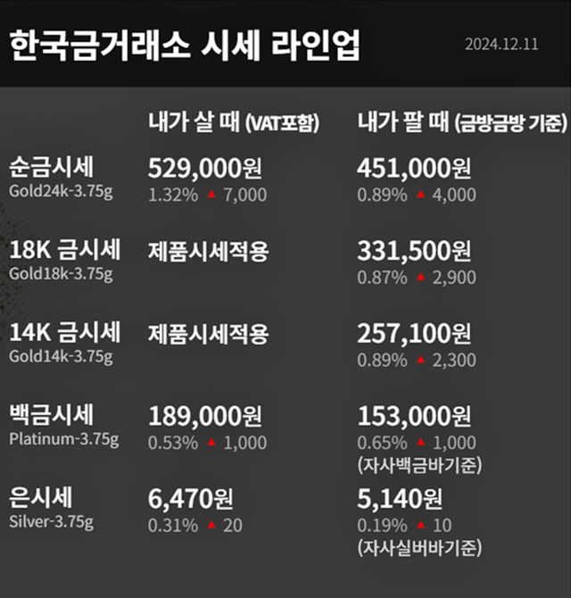 순금(24K) : 매입가 52만 9000원 / 매도가 45만 1000원