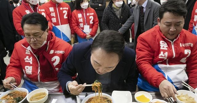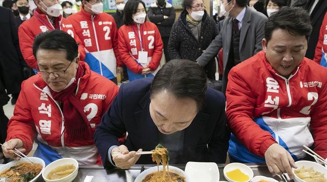 2022년 군산 공설시장에서 '매운 잡채'를 먹던 윤석열 대통령 / 뉴스1