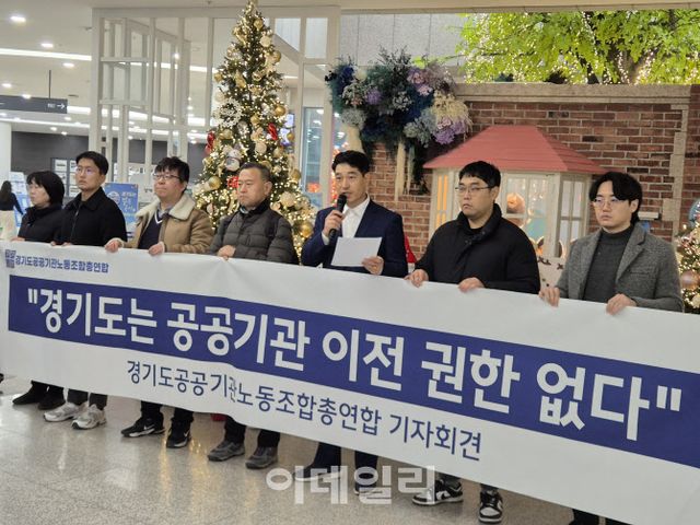 11일 경기도공공기관노동조합총연합(경공노총)은 경기도청 로비에서 기자회견을 열고 경기도 공공기관 이전 계획의 법적 근거 미비와 예산 낭비를 지적했다. 회견에는 경기신용보증재단, 경기주택도시공사, 경기도경제과학진흥원, 경기도일자리재단, 경기연구원, 경기복지재단, 경기도여성가족재단, 경기콘텐츠진흥원 노조위원장이 참석했다.
