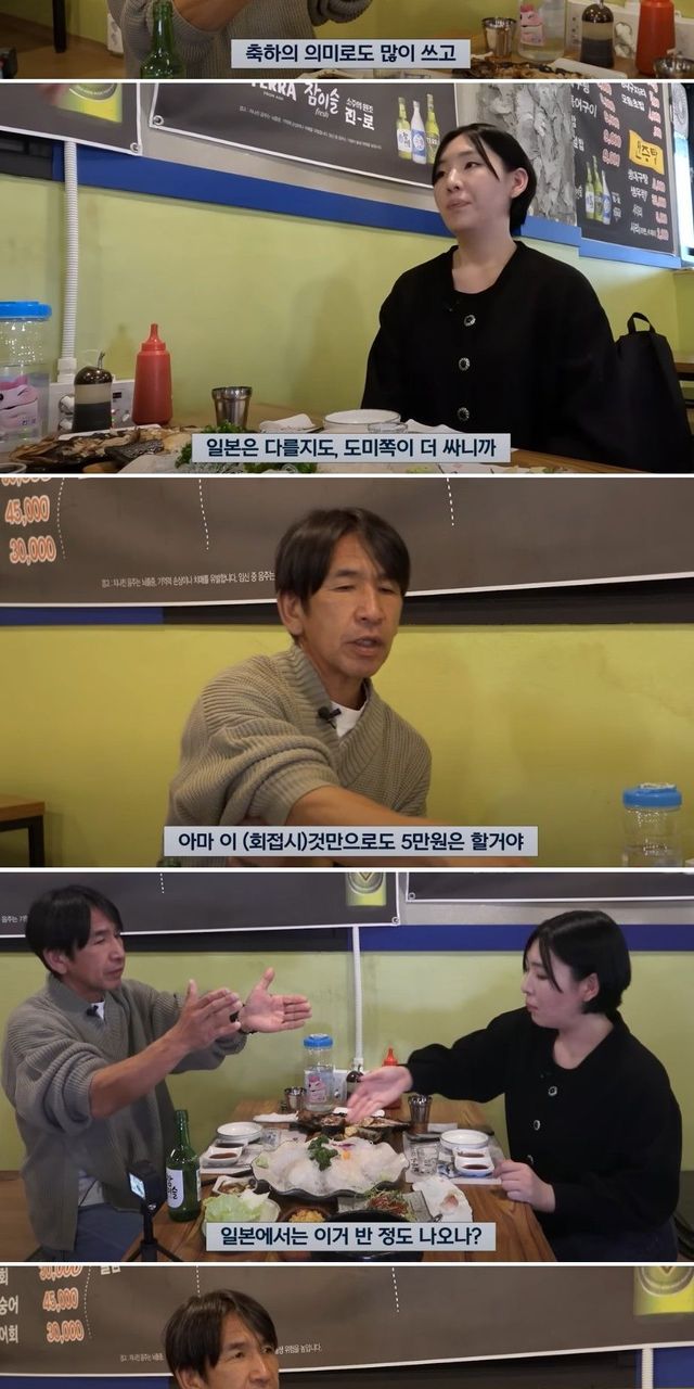 딸이 데려가서 한국 회를 처음 먹어본 일본인 아빠의 소감.