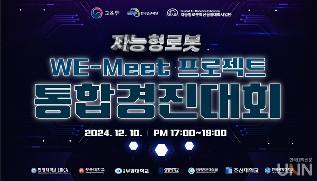 이번 ‘WE-Meet 프로젝트 통합경진대회’는 교육부와 한국연구재단이 지원하는 지능형 로봇 혁신융합대학사업의 주관 대학인 한양대 ERICA를 포함해, 광운대, 국립부경대, 상명대, 영진전문대, 조선대, 한국공학대 등 7개 대학이 참여했다. 이 대회는 학생들의 창의적 문제해결력과 융합적 사고 역량을 키우고, 기업 및 사회와 연계해 혁신 아이디어를 공유하기 위해 기획됐다.