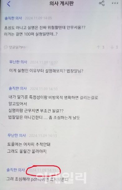 메디스태프에서 활동하는 일부 가해자들은 24시간 내에 게시자 정보를 삭제하는 시스템을 악용해 금·토요일에 게시물을 올리고 있다.