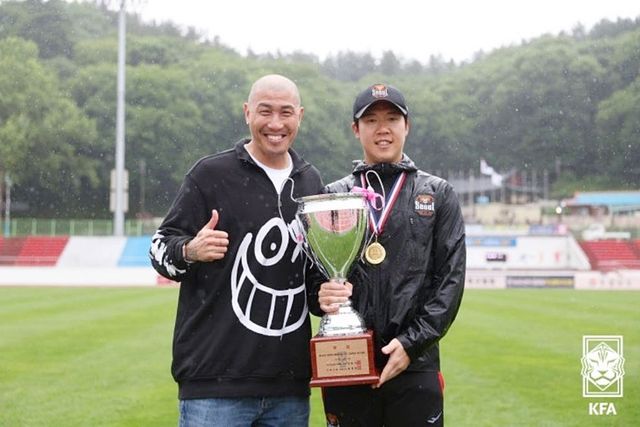 차두리 화성FC 감독과 윤현필 전 오산고 감독. 두 사람은 화성FC에서 감독과 수석코치로 함께 호흡을 맞추게 됐다. / 대한축구협회 제공