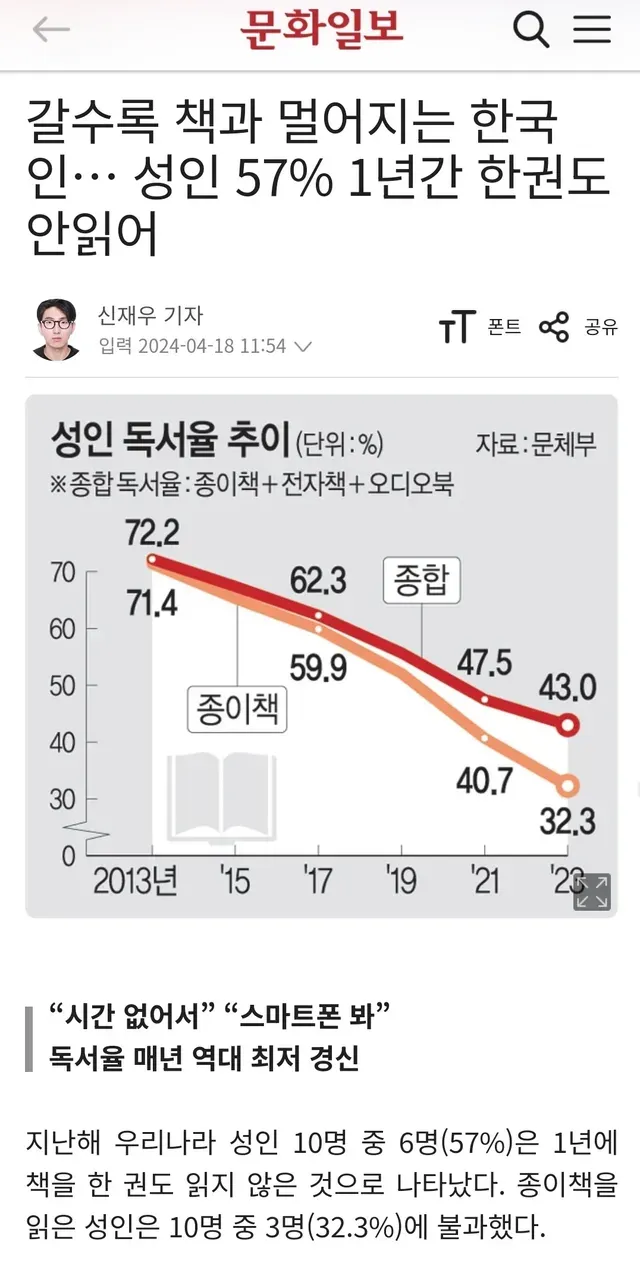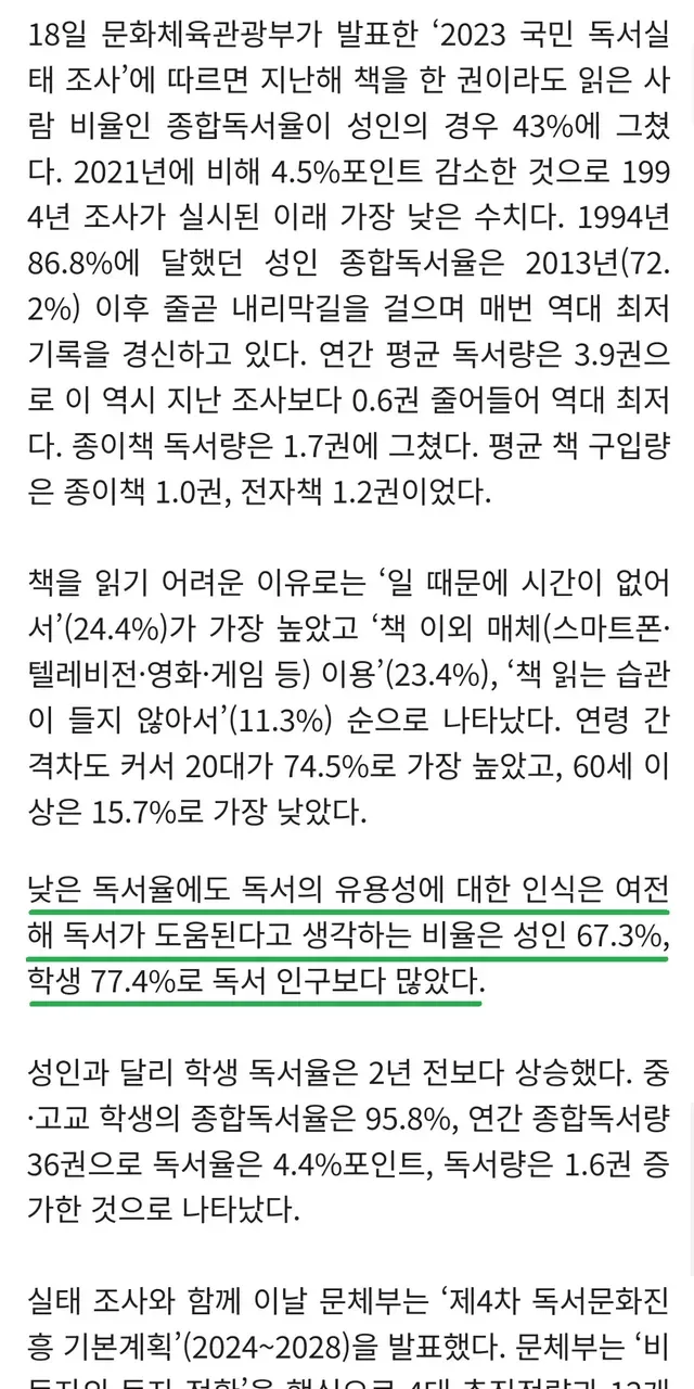 독서의 유용성을 머리로 알고있음에도 저조한 독서율을 보이고있다