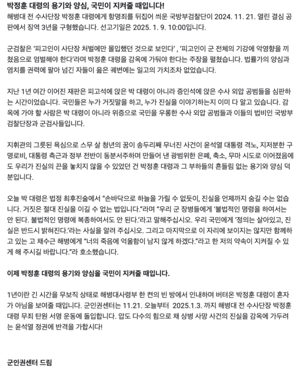 박정훈 대령 무죄 탄원 서명