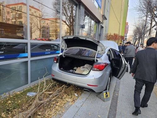 11일 오후 3시 30분께 경기 수원시 권선구 세류동에서 A(77)씨의 아반떼 승용차가 새마을금고 출입구를 들이받았다.