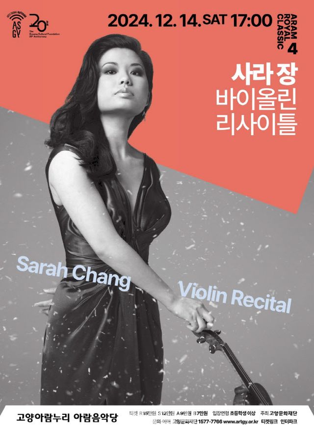 경기 고양특례시 산하 고양문화재단은 오는 14일 고양아람누리 아람음악당에서 바이올리니스트 사라 장 리사이틀을 연다고 11일 밝혔다.