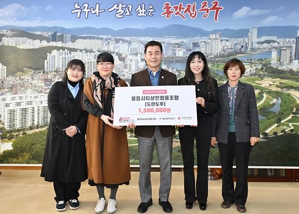 | ▲ 중구 웰컴시티상인협동조합, 이웃돕기 후원금 150만 원 전달 |