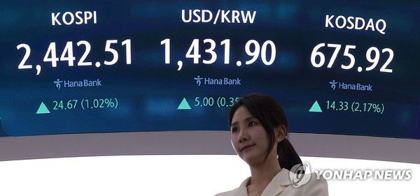 이날 코스피는 전장보다 24.67포인트(1.02%) 오른 2,442.51에 장을 마쳤다.