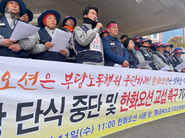 지회는 "김 지회장 단식을 중단하며, 우리는 한화오션에 단체교섭에 나설 것을 다시 한번 촉구한다"며 "해를 넘기도록 단체교섭을 이대로 방치하는 것이 한화오션의 선택이라면 좋다. 우리는 그에 맞는 또 다른 선택과 투쟁을 해나갈 것"이라고 밝혔다.