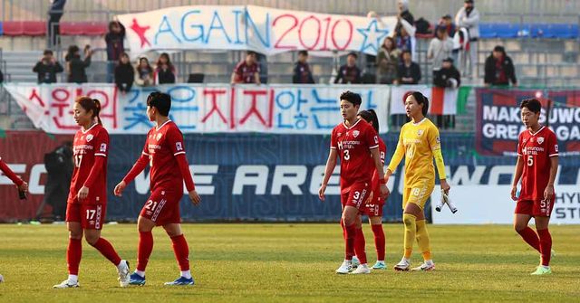 2023년 11월 19일 오후 경기 수원종합운동장에서 열린 2023 여자실업축구 WK리그 챔피언결정전 1차전 수원FC 위민과 인천현대제철 레드엔젤스의 경기에서 3대 1 역전패한 인천 현대제철 선수들이 그라운드를 나서고 있다. / 뉴스1
