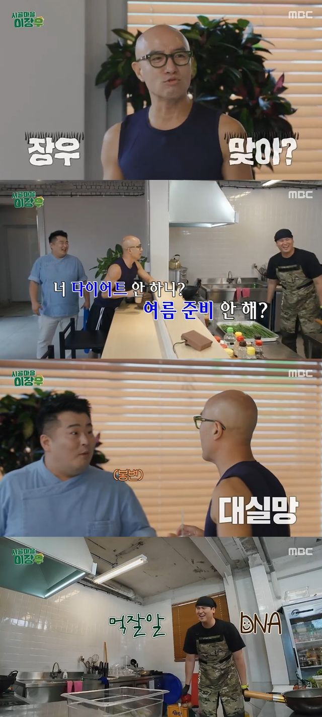 이장우의 막걸리 연구실에 들어오던 홍석천은 이장우를 보고 놀라워하며 "장우 맞아? 너 오랜만에 봤는데 너 다이어트 안하니? 여름준비 안 해?"라며 살이 찐 그를 멀리서 바라봤다.