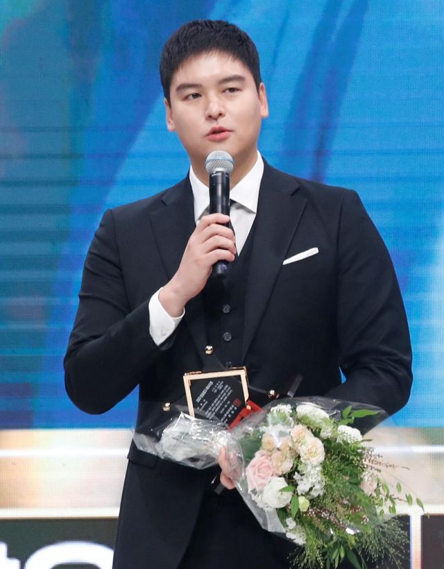 배우 이장우가 지난해 서울 중구 장충동 크레스트72에서 열린 2023 방송광고페스티벌에서 특별상 CF스타 우수상을 수상한 뒤 소감을 밝히고 있다. / 뉴스1
